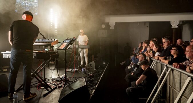 As the stage was reset, all unnecessary clutter was stripped away, leaving just a synthesiser stack stage right and an electric piano stage left. This stark setup reflected the sonic world we were about to enter.
