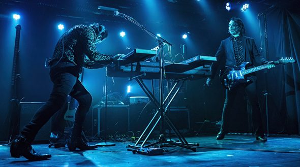 First up were A Thousand Mad Things, a last-minute replacement after visa issues scuppered the original support. For many in attendance, this was an introduction, but a quick glance at the darker corners of the internet suggests the duo are steadily building a name within the UK’s darkwave and synthpop underground.