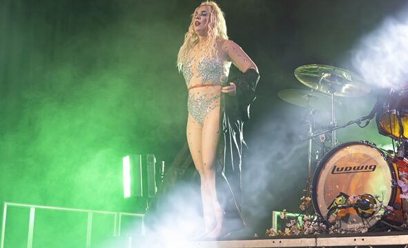 She really knows how to work a crowd and is good value for photographers in the pit as she teases them with her many crawling trips to the front edge of the stage.