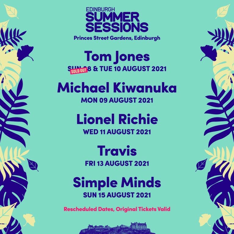 Edinburgh Summer Sessions today announce that huge stars including Lionel Richie, Michael Kiwanuka, Simple Minds, Tom Jones and Travis will return for rescheduled shows for 2021’s festival, ensuring fans don’t miss out on the iconic Princes Street Gardens dates.