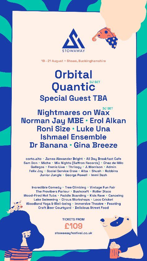 The line-up also includes Erol Alkan, Nightmares On Wax (DJ Set), Roni Size, Norman Jay MBE, Luke Una and Ishmael Ensemble plus many more. Set in picturesque Buckinghamshire countryside with ancient woodland and lakes, Stowaway is an intelligently curated, incredibly stylish three-day festival with camping.