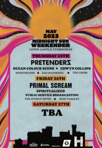 “The Midnight Sun Weekender will be the first ever major pop and rock Festival to be held in the Western Isles. It will be held, annually, on Lews Castle Green, the iconic setting in front of Lews Castle and overlooking Stornoway Harbour.”