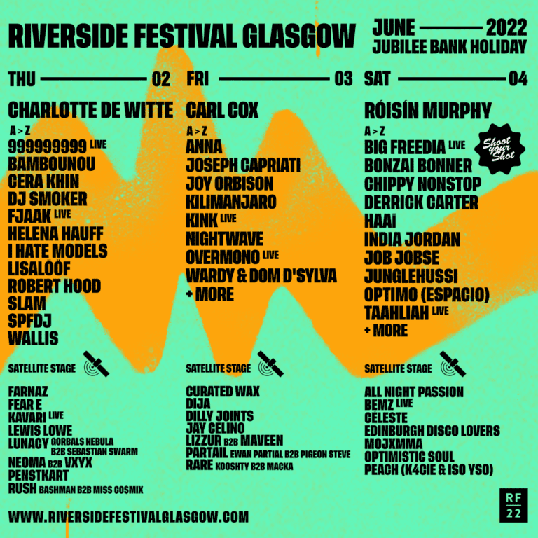 Organisers have also confirmed that, following last year’s success, the Satellite Stage will be returning to RF22 for the second time. Dedicated to showcasing the diversity and abundance of up-and-coming homegrown talent Glasgow is renowned for, the Satellite Stage will take fans on a journey of musical discovery across the city’s flourishing underground music scene.