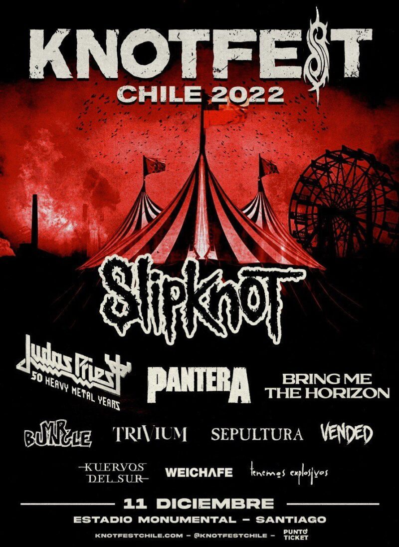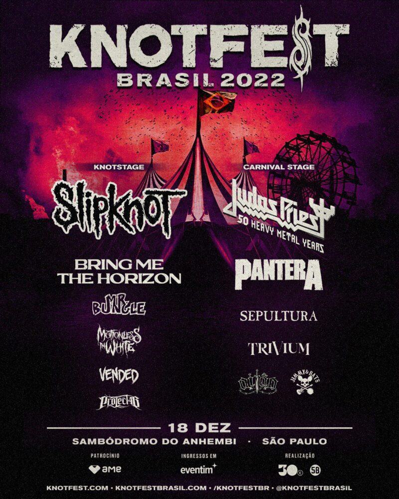 Also announced today is the addition of JUDAS PRIEST and PANTERA to the lineups for both KNOTFEST CHILE and KNOTFEST BRASIL. These legendary acts will join previously announced headliners SLIPKNOT for the first ever editions of the festival in both locations. Both KNOTFEST CHILE and KNOTFEST BRASIL will also feature BRING ME THE HORIZON, MR BUNGLE, TRIVIUM, SEPULTURA, MOTIONLESS IN WHITE, VENDED and PROJECT 46. KNOTFEST CHILE is slated to take place on Sunday, December 11th at Estadio Monumental in Santiago for tickets and info, head to www.knotfestchile.com. KNOTFEST BRASIL will follow on Sunday, December 18th, 2022 at Sambódromo do Anhembi in São Paulo. For tickets and info head to www.knotfestbrasil.com.