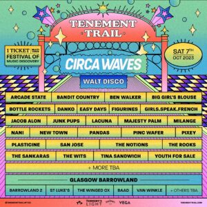 Scotland’s festival for music discovery, TENEMENT TRAIL, today reveals the 2023 line-up including headliners Circa Waves plus over 20 other incredible acts with more to be announced.