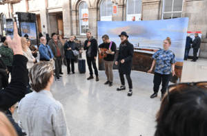 15th October 2024 – Chart-topping rock band Maximo Park amazed passengers with a surprise acoustic performance at their hometown railway station in Newcastle, which is managed by LNER. The surprise set was in celebration of the upcoming arrival of National Album Day on Saturday 19th October 2024, which this year celebrates Great British Groups.