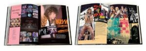 A compartment under the book includes exact replicas of the following items held in the Bon Jovi archive: Three Bon Jovi pins/badges and two guitar picks in a small cloth bag, a VIP Have a Nice Day tour pass and Jon Bon Jovi’s personal All Access laminate pass for the 1984 Runaway tour. A large pull-ribbon, printed with the Bon Jovi logo, lifts the book from the handcrafted case.
