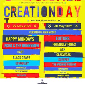 A celebration of the legendary Creation Records label and the legacy of its visionary founder: Alan McGee, Creation Day will bring two days of exceptional live music to Wolverhampton West Park next year (29-30 May 2021).