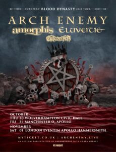 The metal legends are set to ignite stages across Europe on their new “BLOOD DYNASTY” headline tour in autumn/winter 2025. Joining them on their unrelenting metal crusade are the mighty AMORPHIS and ELUVEITIE as co-special guests, with the crushing force of GATECREEPER poised to blast open the gates of chaos. The U.K. leg lays waste to Wolverhampton, Manchester (on Halloween no less), and London.