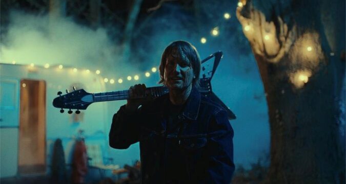 “With only Tim available for the shoot i had to think of a narrative that would suit the song and utilize Tim’s natural charms and onscreen presence. I knew he could act as we had already done this with ‘Crashed Out Wasted‘ so I thought it would be amusing to nod to another film genre, this time horror. I had recently been watching some episodes of Ash Vs The Evil Dead and i thought this would be a simple way of paying homage to Sam Raimi, Bruce Campbell et al and a nifty setting for the music video for ‘Jump In The Line’.