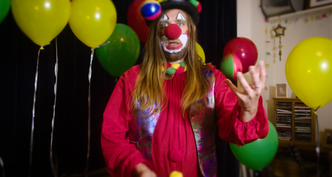 The accompanying video documents these ambitions through saddened yet hopeful eyes. “The video follows a down and out clown,” explains Adam, “who wants to escape from his mundane existence. He has a eureka moment when he sees a balloon floating by his window and decides to embark on a new career as a handyman, collecting balloons as payment. He eventually builds his balloon payments to the point where he has enough to float away to a better place.”