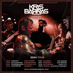 KRIS BARRAS BAND comprises frontman Kris Barras, Josiah J. Manning on guitar, Billy Hammett on drums, and latest member Frazer Kerslake on bass.