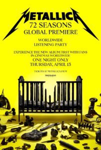 Tickets are on sale now for Metallica and Trafalgar Releasing’s worldwide listening party for Metallica’s forthcoming 12th studio album, 72 Seasons. For one night only on Thursday, April 13, 72 Seasons will play exclusively for cinema audiences worldwide—with every one of the new songs featuring its own music video and exclusive commentary from the band. Fans can also experience Metallica like never before in Dolby Atmos®, an audio experience that will immerse listeners inside each song to reveal details with unparalleled clarity and depth.