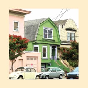 Preceding the release of Uncommon Weather was the Reds, Pinks & Purples’ 2nd album, one of the record buying joys of 2020, You Might Be Happy Someday, and, earlier, their first proper full length Anxiety Art, a title that might nod to the classic Television Personalities song “Anxiety Block.” Donaldson’s music continuously reckons with the influence of Dan Treacy, whose own forays into drum-machines, echo, and reverb in the early 1990s is an important reference point for The Reds, Pinks & Purples’ musical template. Paul Weller, Robert Smith, and Sarah Records also come to mind. But, as important, Donaldson sees his projects as visual expressions too, often blurring the lines of records and physical art objects. They could just as well be “art multiples” as well as records. The pattern for Reds, Pinks & Purples’ records is to document San Francisco’s Inner Richmond district in photographs: the muted, pastel colours and un-peopled compositions unfold in a series of images that read like counter-melodies to Donaldson’s distinctive voice, a vocal tone that always complements the colors.