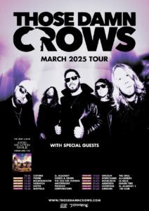 In the decade-plus since they formed in the fiercely working class town of Bridgend, South Wales, Those Damn Crows have gone from wide-eyed hopefuls playing to 20 people at the Camden Barfly to the leading lights of their generation, a genuine modern rock powerhouse spearheading the scene’s current resurgence, notching up a Top 3 album with 2023’s Inhale/Exhale and sharing massive stages with everyone from Queens Of The Stone Age and ZZ Top to the Alice Cooper/Johnny Depp supergroup The Hollywood Vampires and German punk superstars Böhse Onkelz.