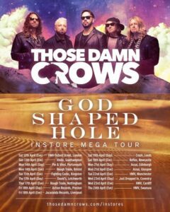 As well as meeting the band and getting your album signed, fans will get to hear some acoustic renditions of tracks from God Shaped Hole! For full details and to secure your place at these very special events visit https://thosedamncrows.com/instores/ – first come, first serve, and places are limited!
