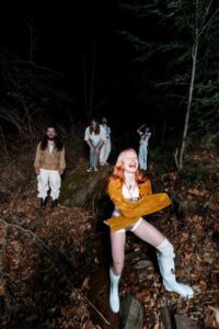 Wet Leg are; Rhian Teasdale, Hester Chambers, Ellis Durand (bass), Henry Holmes (drums) & Joshua Mobaraki (guitar, synth).