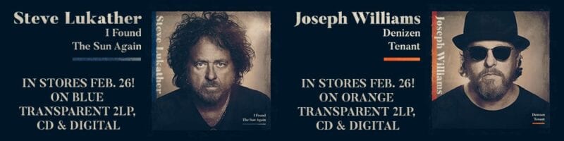 Toto’s Steve Lukather aka “Luke” and Joseph Williams will release individual solo albums on February 26, 2021 via The Players Club / Mascot Label Group. Both artists have made significant contributions to the other’s album. Lukather will release I Found The Sun Again and had previously shared the video for “Run To Me” featuring Ringo Starr, but Williams can now also reveal the first song from the album Denizen Tenant, “Never Saw You Coming.”