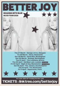 With 8 headline dates throughout March and April, including a headline London show at Old Blue Last and a hometown show at Manchester’s Night & Day (recently upgraded due to popular demand), the shows will coincide with the release of better joy’s eagerly awaited ‘heading into blue’ EP – out 28th March.