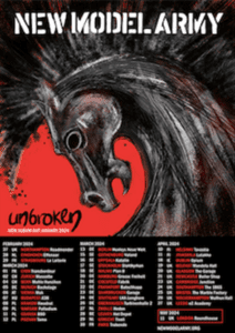 Formed in Bradford in 1980, New Model Army are storming through their fifth decade and show no signs of letting up. They recently released a live double concert album ‘Sinfonia’ in September 2023 – a unique performance recorded with the Sinfonia Leipzig Orchestra at the Tempodrom venue in Berlin. The new studio album ‘Unbroken’ is out 26 January 2024.