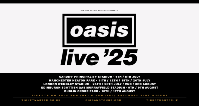 Oasis today end years of feverish speculation with the confirmation of a long awaited run of UK and Ireland shows forming the domestic leg of their OASIS LIVE ’25 world tour. Oasis will hit Cardiff, Manchester, London, Edinburgh and Dublin in the summer of 2025. Their only shows in Europe next year, this will be one of the biggest live moments and hottest tickets of the decade.