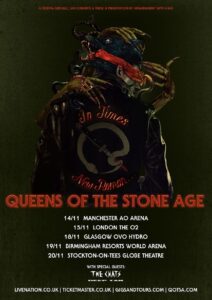 Ahead of their eagerly anticipated headline show on Glastonbury’s Other Stage (Sunday 25th June) and sold out UK shows, Queens Of The Stone Age have today announced the details of their ‘The End Is Nero’ UK and European Arena tour. The Autumn dates will kick off on 4th November at Amsterdam’s Ziggo Dome before getting to the UK on 14th November at Manchester AO Arena and London’s The O2 on 15th November. The End Is Nero tour ends on 22nd November at Dublin’s 3Arena. Queens of The Stone Age Fan Pre-sale starts today at 10am BST / 11am CEST with public on-sale following Friday 16th June, 10am local time. Main support on all dates comes from The Chats and deep tan.