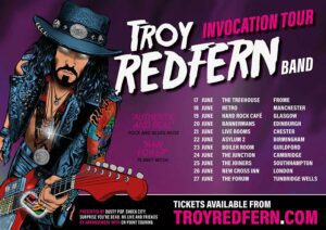 Critically acclaimed British slide guitarist and singer songwriter “Troy Redfern” will embark on “Troy Redfern “Invocation” Headline UK Tour” on June 17th. The 11-date UK tour will showcase tracks from Redfern’s forthcoming studio album Invocation, plus songs from his extensive back catalogue. Tickets go on sale at 9am on Friday February 2nd from www.troyredfern.com.