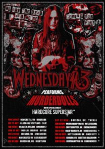 WEDNESDAY 13 has announced a UK & EU Tour celebrating 20 Years of MURDERDOLLS, his iconic former band with Joey Jordison. Wednesday and his current solo band – which features former MURDERDOLLS alumni Roman Surman and Jack Tankersley – will be performing a full set of MURDERDOLLS songs, chosen from their celebrated 2002 debut album, ‘Beyond The Valley Of The Murderdolls’ and their triumphant 2010 return, ‘Women And Children Last’.