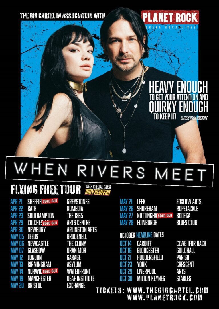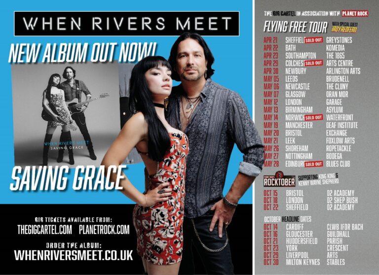When Rivers Meet, comprised of husband and wife, Aaron, and Grace Bond, have announced three Planet Rock “Rocktober” shows with Kenny Wayne Shepherd and King King at Bristol O2 Academy (Oct 15), London O2 Shepherds Bush Empire (Oct 18), and Sheffield O2 Academy (Oct 22).